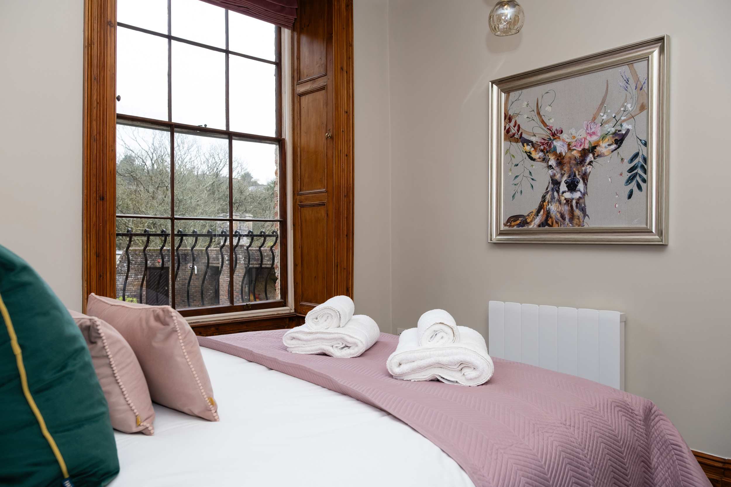 First Floor | 2 bedrooms | 1 bathroom | Views overlooking South Court, towards wooded hills