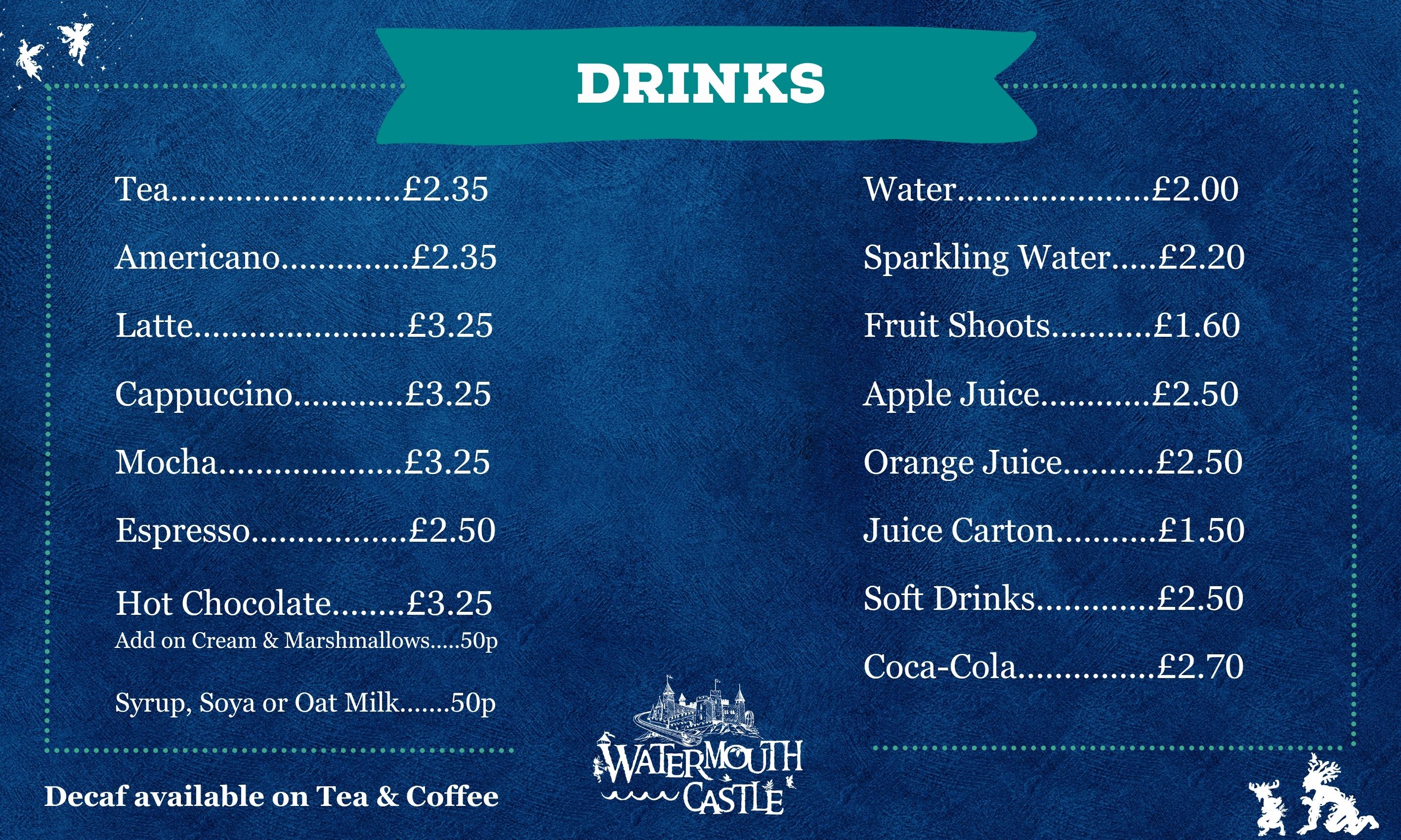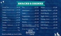 Hot and cold drinks are available at both outlets and, during the peak season period, there are additional catering outlets within the Park serving ice-creams, food and drink.