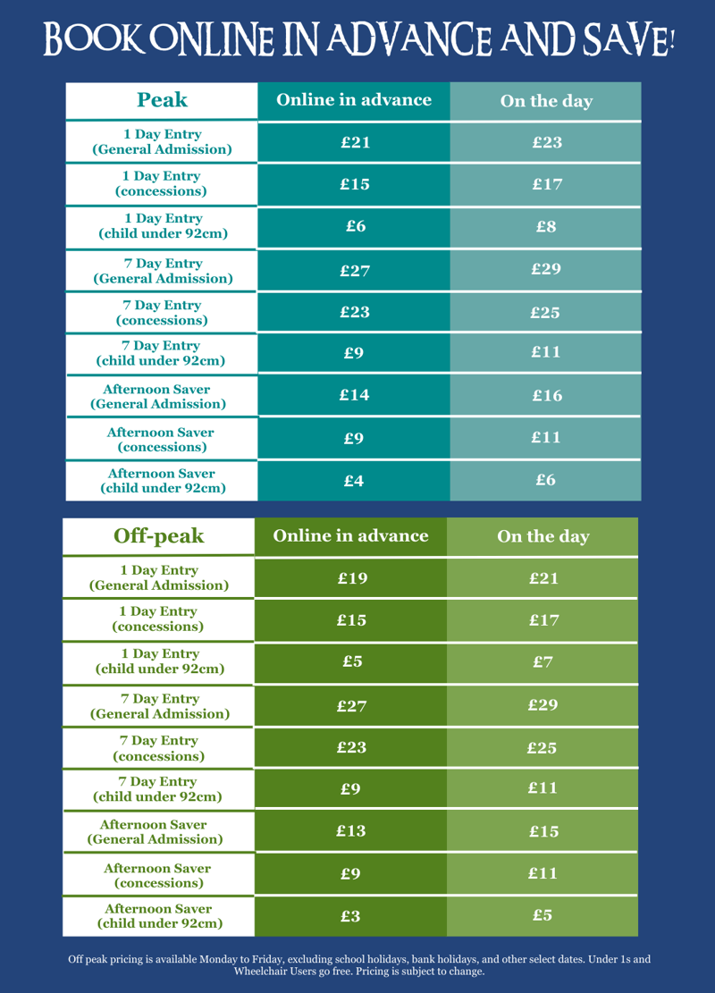 *Please produce documentary proof of disability at the admissions desk (such as Disability Living Allowance letter or similar). Failure to provide proof will result in an additional charge to enter the park.